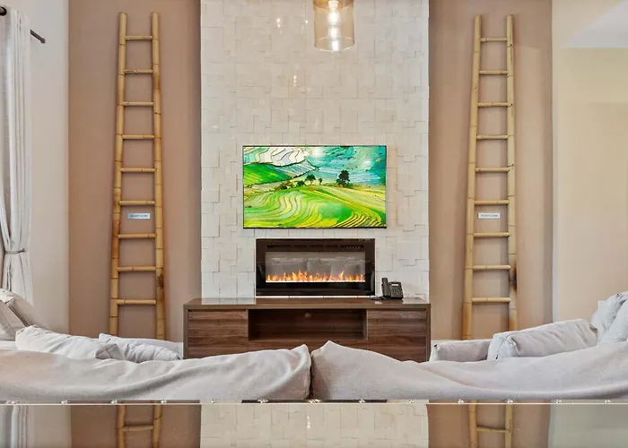Minutes To Disney Chic Dream Villa With Stunning Patio And Resort Perks includes a fully furnished kitchen equipped with an electric kettle, a fridge, and glassware. The bar Wildside BBQ Bar & Grille is located 10 minutes away by car and serves American dishes. Guests can easily reach Church Street train stop, which is 50 km away.